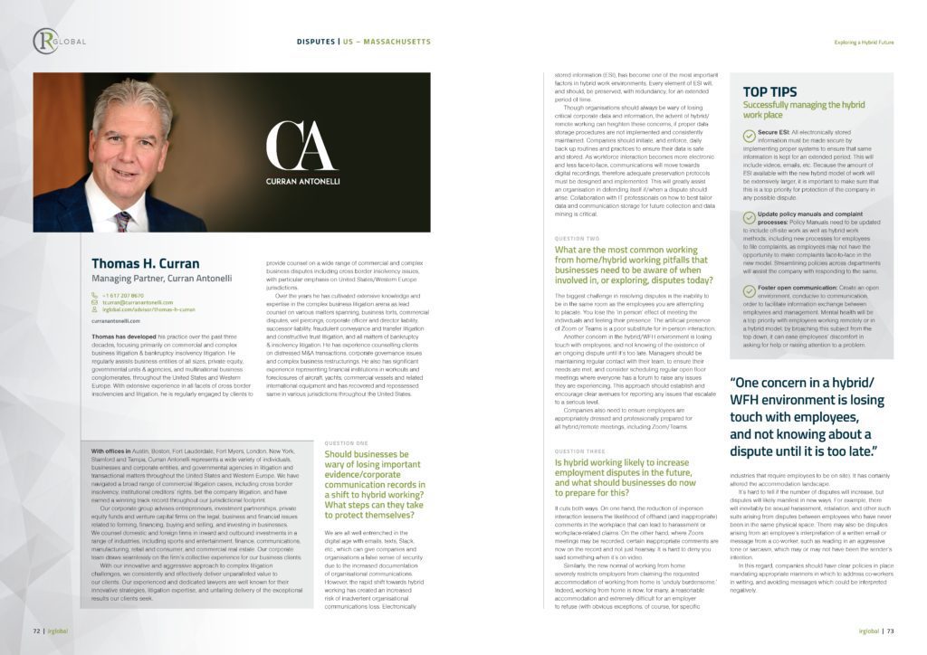 In recent IR Global publication, ‘Exploring a Hybrid Future,' Thomas H. Curran Associates's Managing Partner Thomas...